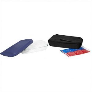 Pyrex Portables 4-piece set includes 1-each 9 by 13 by 2-inch sculptured rectangular dish, 1-each 9 by 13-inch-water blue plastic cover, 1-each hot pack, and 1-each water blue insulated carrier. Pyrex Portables food transportation system includes an insulated bag and hot and cold packs ideally suited to fit informal and mobile lifestyles. Pyrex Portables allow busy, on-the-go consumers to take their favorite meal wherever they go (hot or cold) sealed in the dish it was cooked in. No fuss, no spills, no bother. There's no substitute for Pyrex, the original glass bakeware. Introduced 90 years ago and made of a durable, high temperature material, Pyrex remains the ideal medium for safe, dependable food preparation.