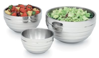 Double wall construction provides insulation to maintain proper food temperature - hot or cold. Requires no preheating or chilling and will not sweat. Heavy gauge 18/8 stainless steel will not affect taste or color of food. Mirror-finished exterior for an upscale look. Satin-finished interior hides scratches and wear.