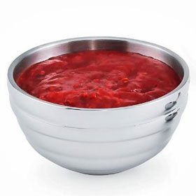 Vollrath 46587 Buffet Serving Bowls Insulated Round Serving Bowl constructed of 18/8 heavy gauge stainless steel. No need to preheat or chill. Will not sweat. Mirror finish for an upscale look with